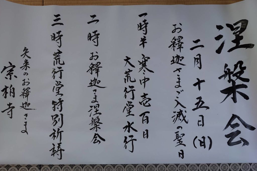 令和八年 釈尊涅槃会のご案内 2026年2月15日 最終更新日時 : 2026年2月15日 souhakuji_admin 今年は2月10日に寒中壱百日の荒行を成満された四名の上人をお招きして執り行います。ご参拝はどなたでもご自由に!是非お参りください! 神楽坂界隈を紹介している「かぐらむら」さまでも当行事を取り上げてくださっています。是非ごらんください。 【宗柏寺】涅槃会特別祈祷|イベント掲示板|神楽坂 de かぐらむら 神楽坂・矢来町にある宗柏寺では、2月15日、お釈迦様の入滅を偲ぶ「涅槃会(ねはんえ)」が行われます。この涅槃会は年に一度の厳修行事。日蓮宗大荒行堂を成満した僧侶を… 神楽坂 de かぐらむら